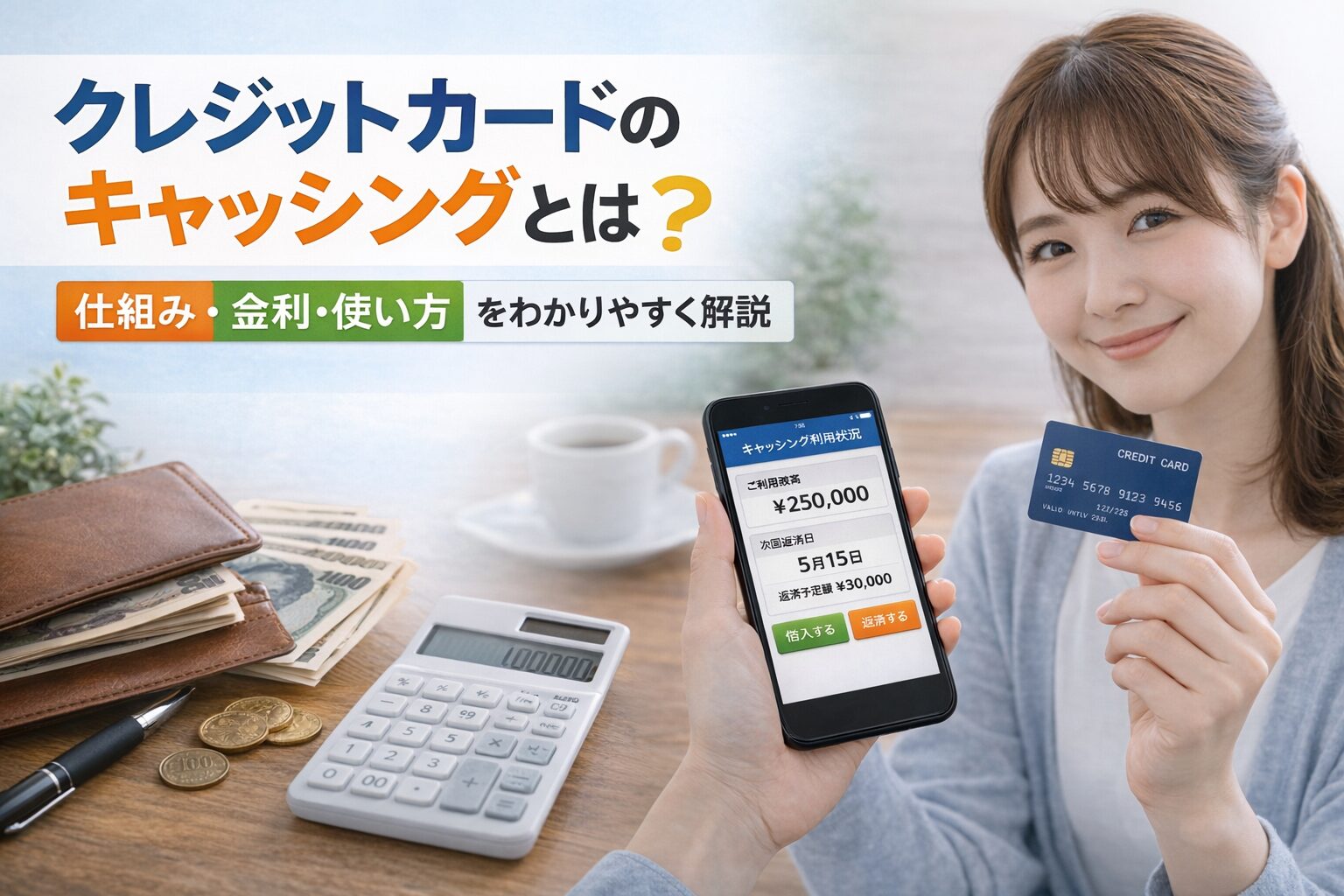 クレジットカードのキャッシングとは、カードに設定された枠の範囲内で現金を借りられる機能のことです。急にお金が必要になったときに便利ですが、「ショッピングとの違いがよく分からない」「利息はどのくらいかかるの?」「返済方法はどうなるの?」と不安に感じる人も多いのではないでしょうか。